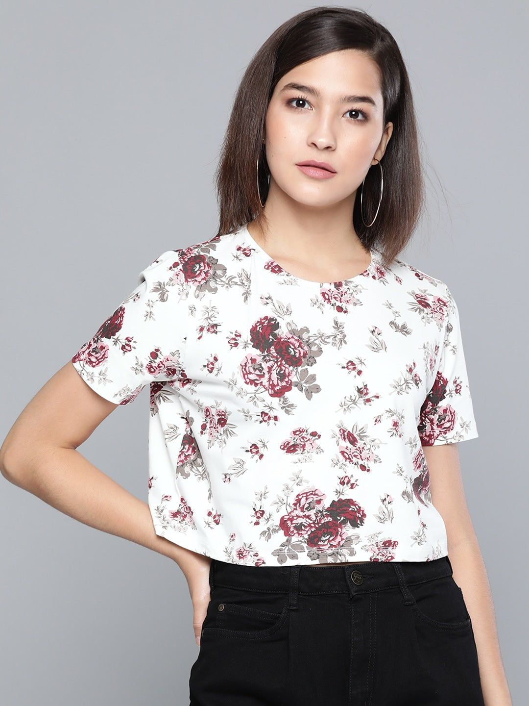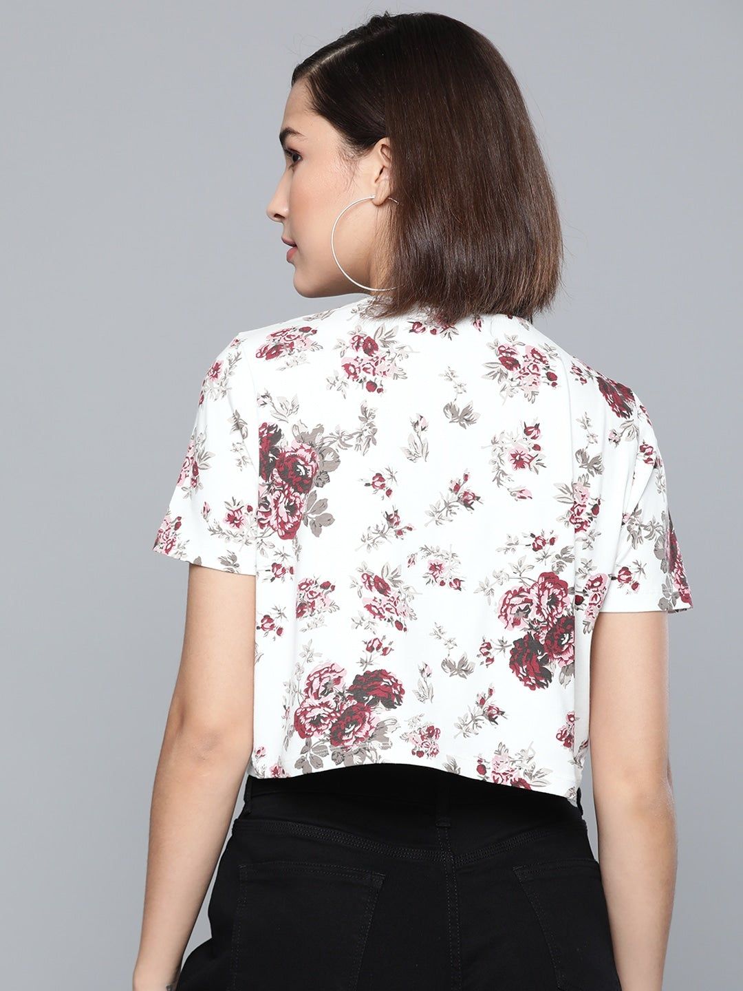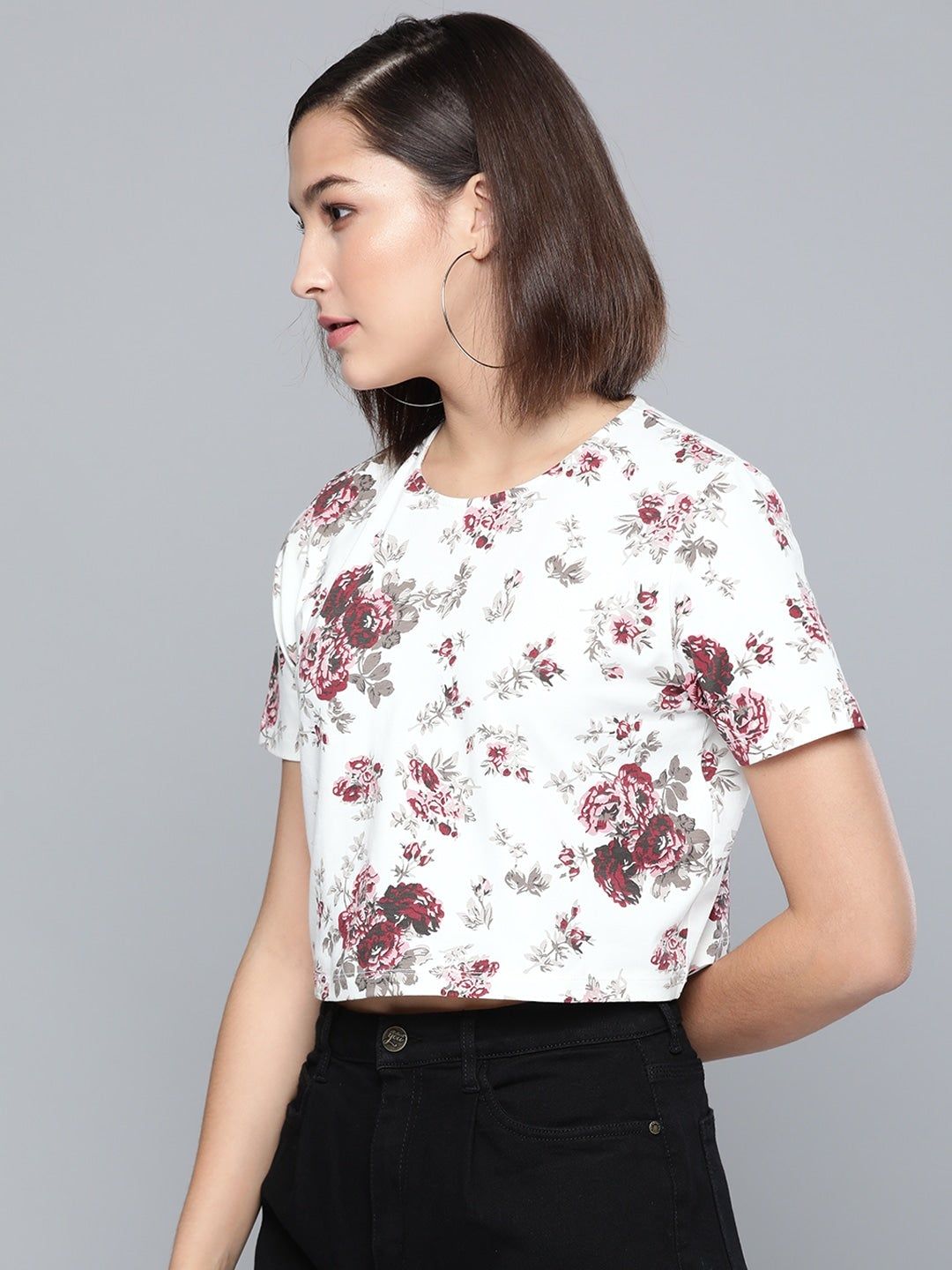 Maroon Floral Boxy T-Shirt